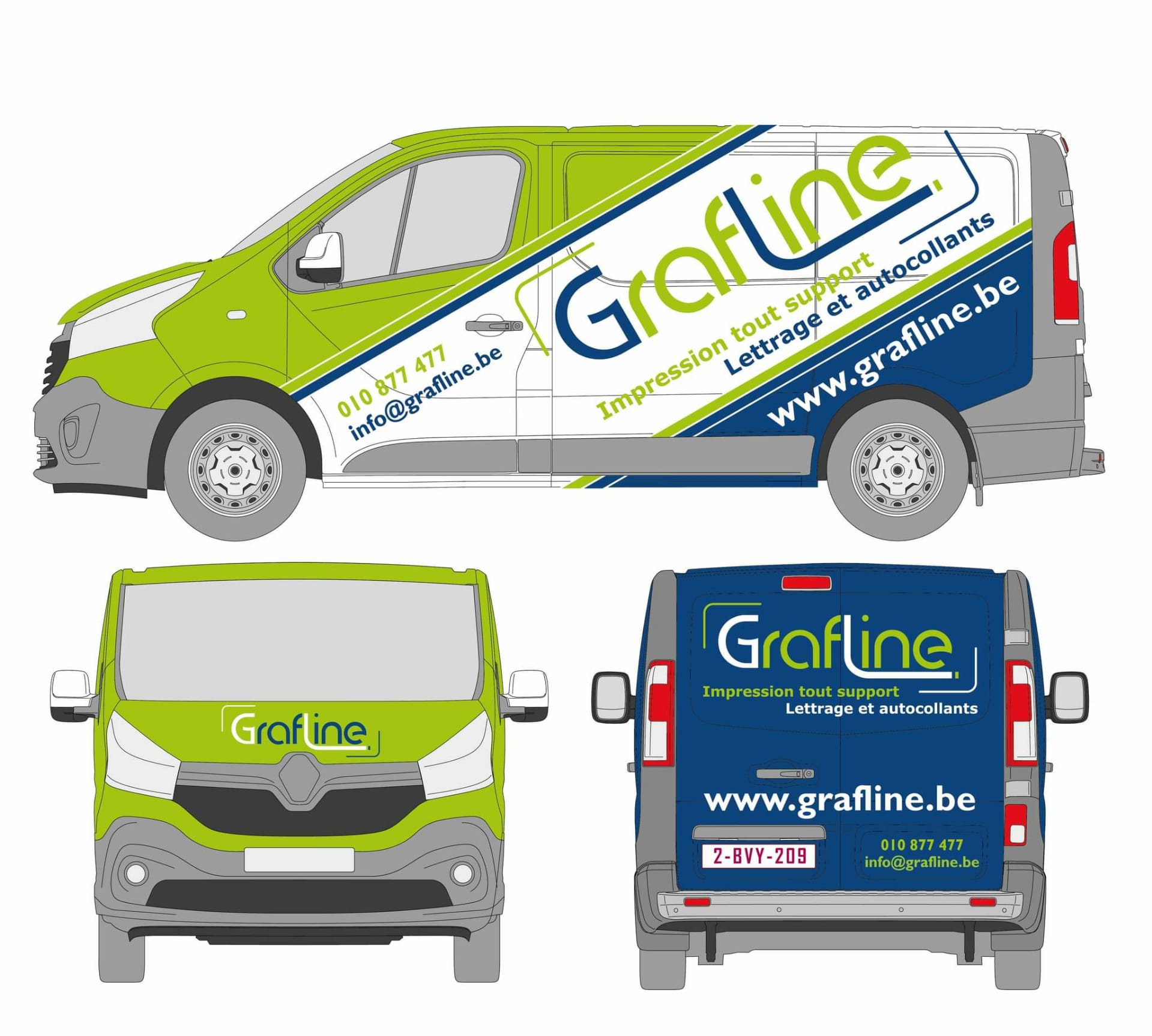 Une sélection de réalisations signées Grafline, allant du lettrage aux enseignes, en passant par les stickers, bâches, panneaux et projets sur mesure.